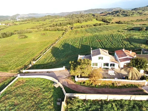 Con más de 46 hectáreas de terreno rústico privado, la finca ofrece una combinación excepcional de privacidad absoluta, amplitud paisajística y proximidad estratégica al mar, a la capital y al aeropuerto. El entorno, libre de vecinos directos, está definido por muros de piedra seca, campos abiertos y la autenticidad de la arquitectura rural menorquina.