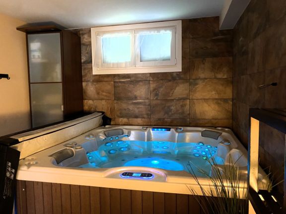 La planta inferior, alberga un jacuzzi, salón con acceso directo al jardín, dos dormitorios y un cuarto de baño.