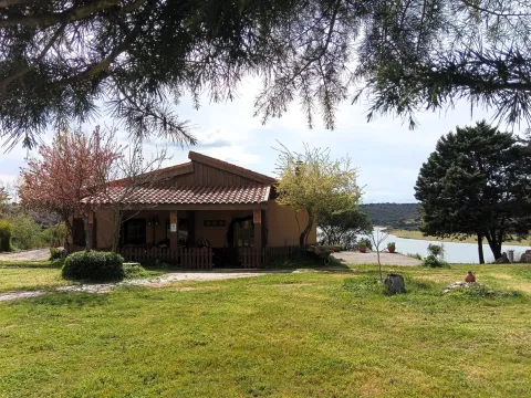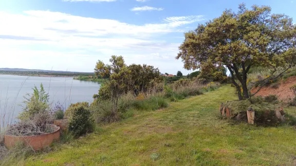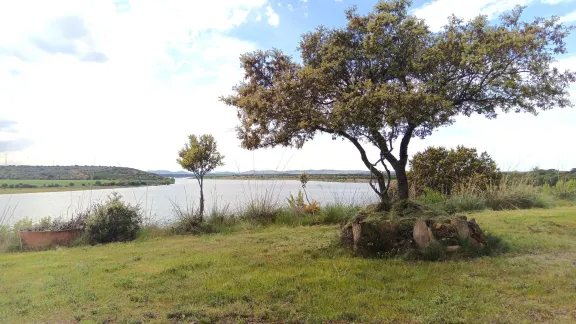 El terreno se caracteriza por amplias zonas de pradera, grandes árboles de sombra y vistas panorámicas al embalse, conformando un auténtico refugio natural, idílico para los amantes del campo, la navegación y los espacios abiertos.
