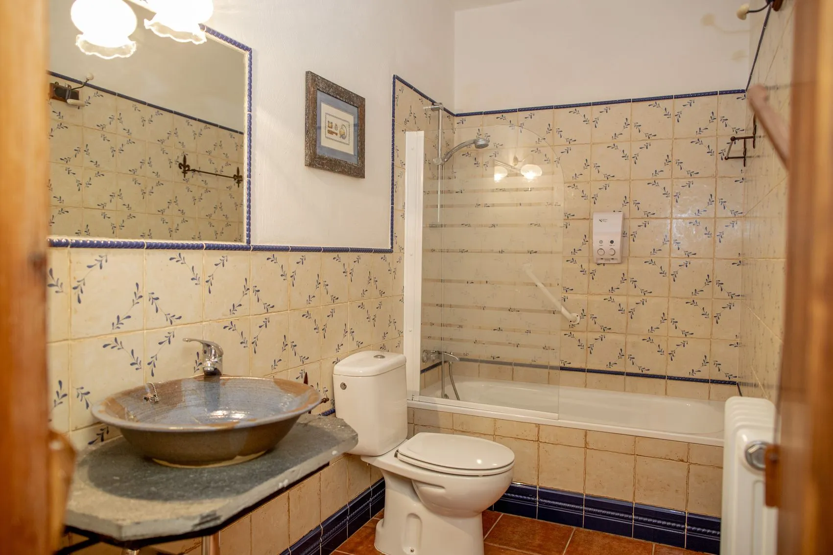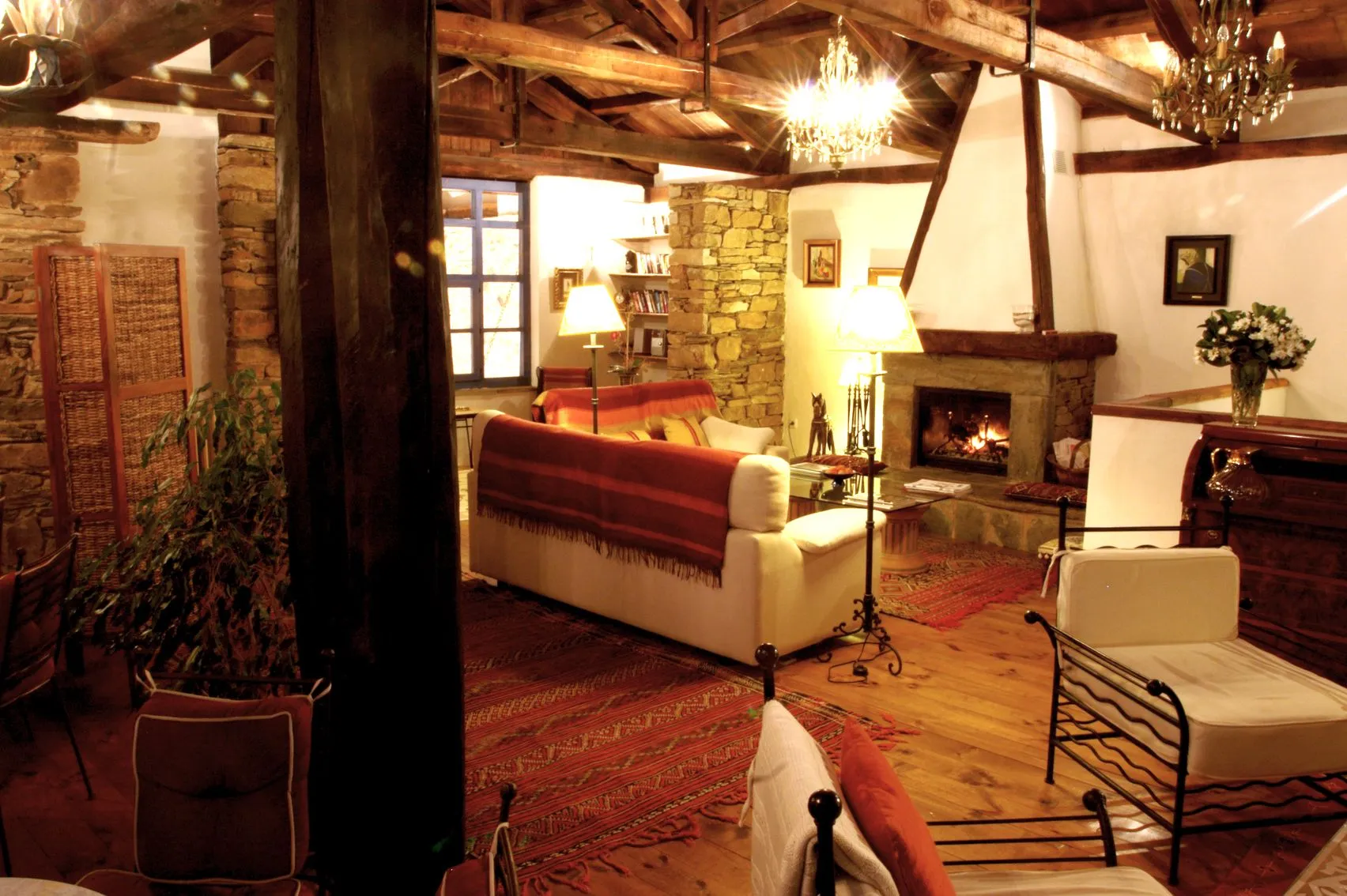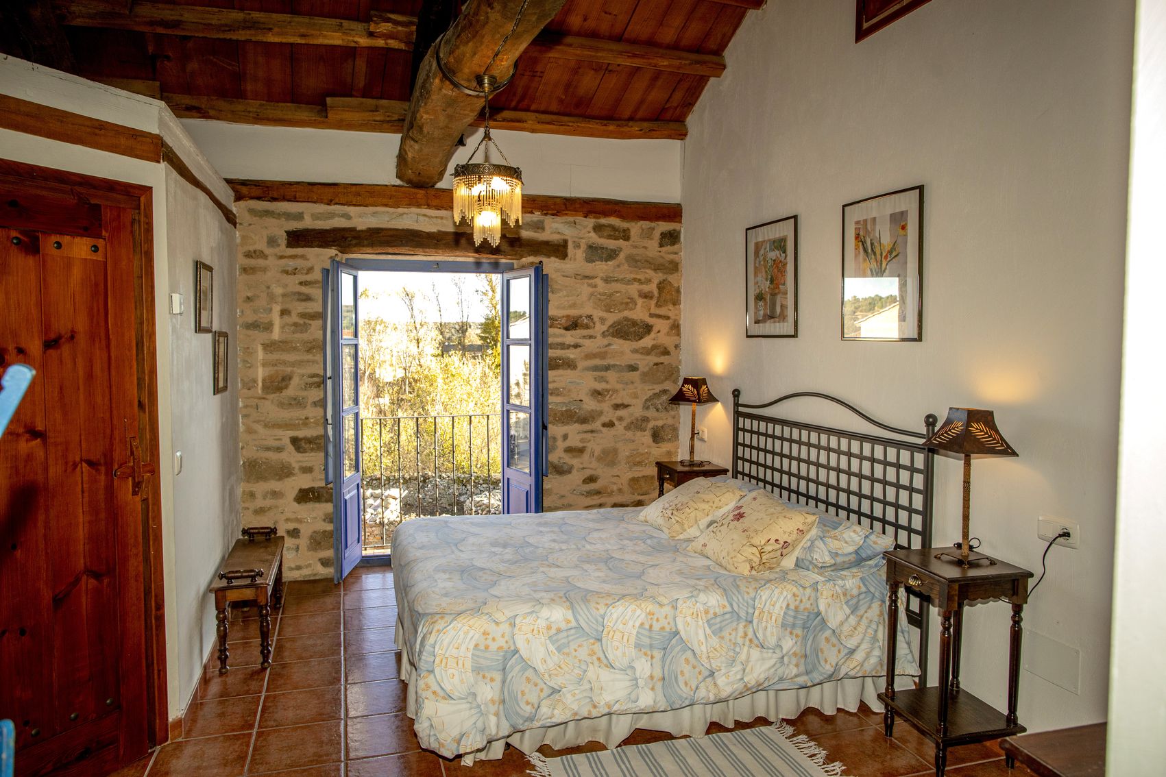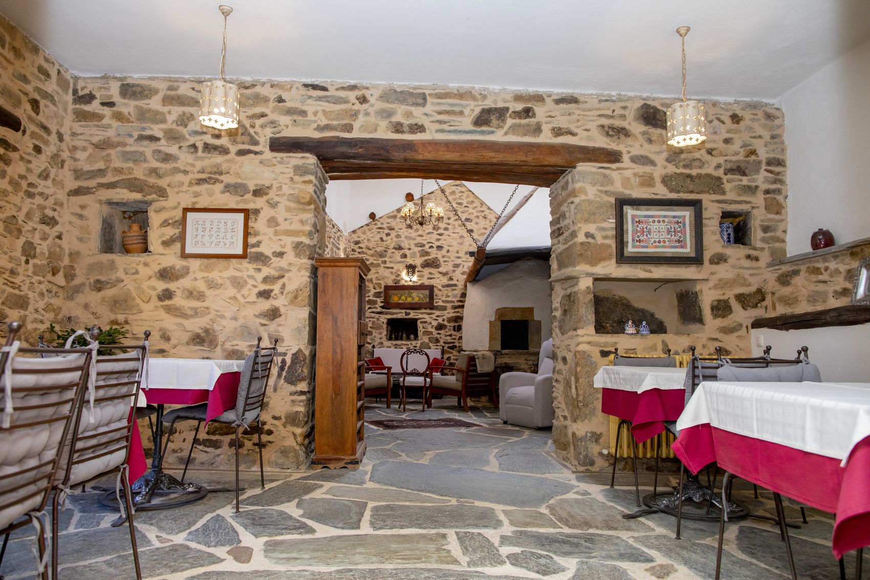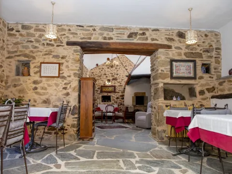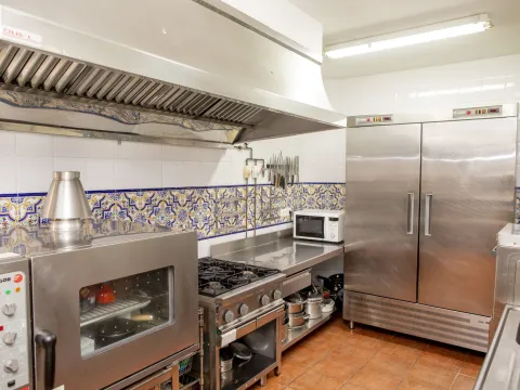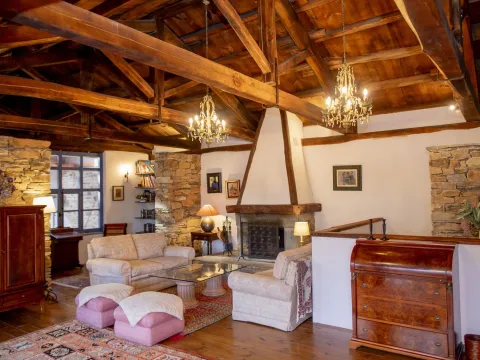 El conjunto cuenta en total con seis habitaciones con baño, amplios salones con chimenea, comedores de estilo rústico y una cocina profesional totalmente equipada. Su calefacción sectorizada y sus espacios versátiles permiten disfrutarla tanto como gran vivienda familiar como proyecto rural con restaurante y alojamiento.