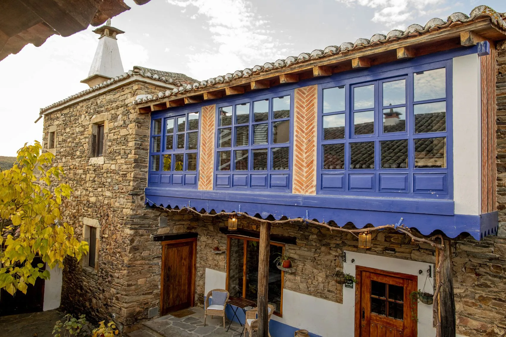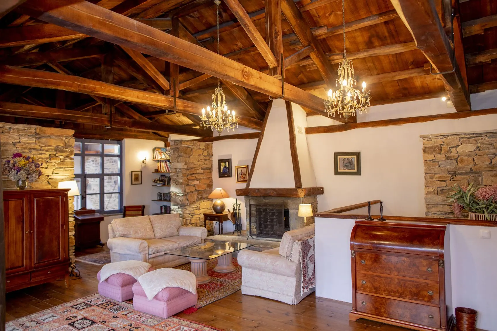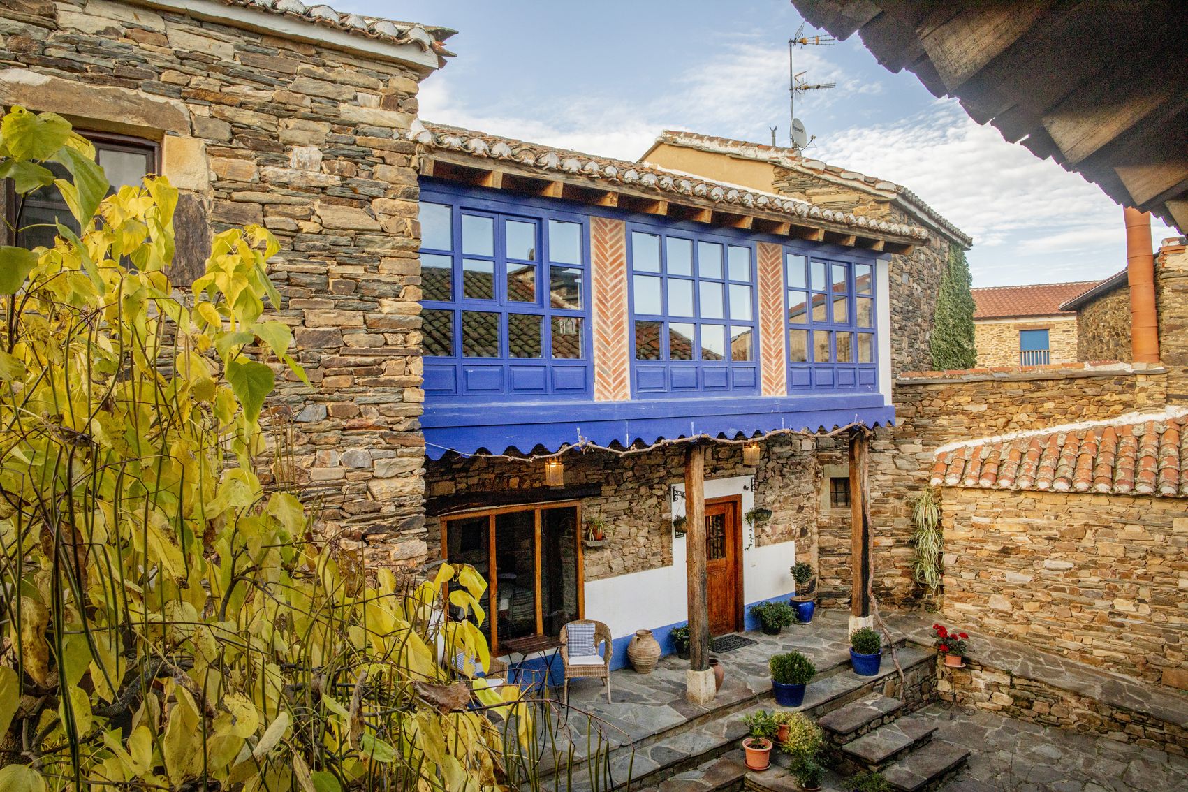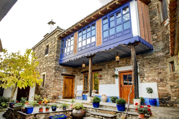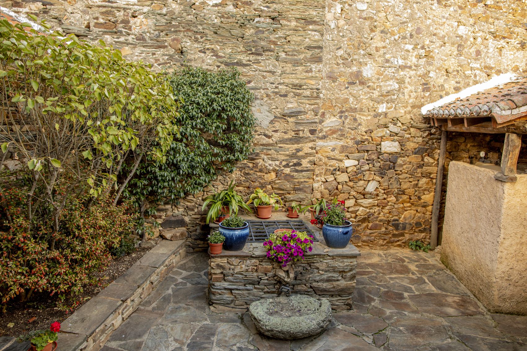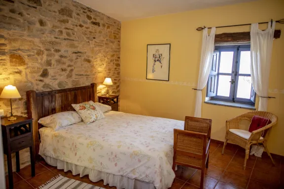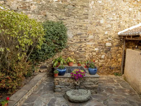 Con casi 500 m² construidos distribuidos en dos edificaciones de piedra que se abrazan alrededor de un encantador patio empedrado, la casa conserva su alma original: el arco de entrada, el pozo, la galería acristalada, los corredores de madera y el antiguo horno tradicional.