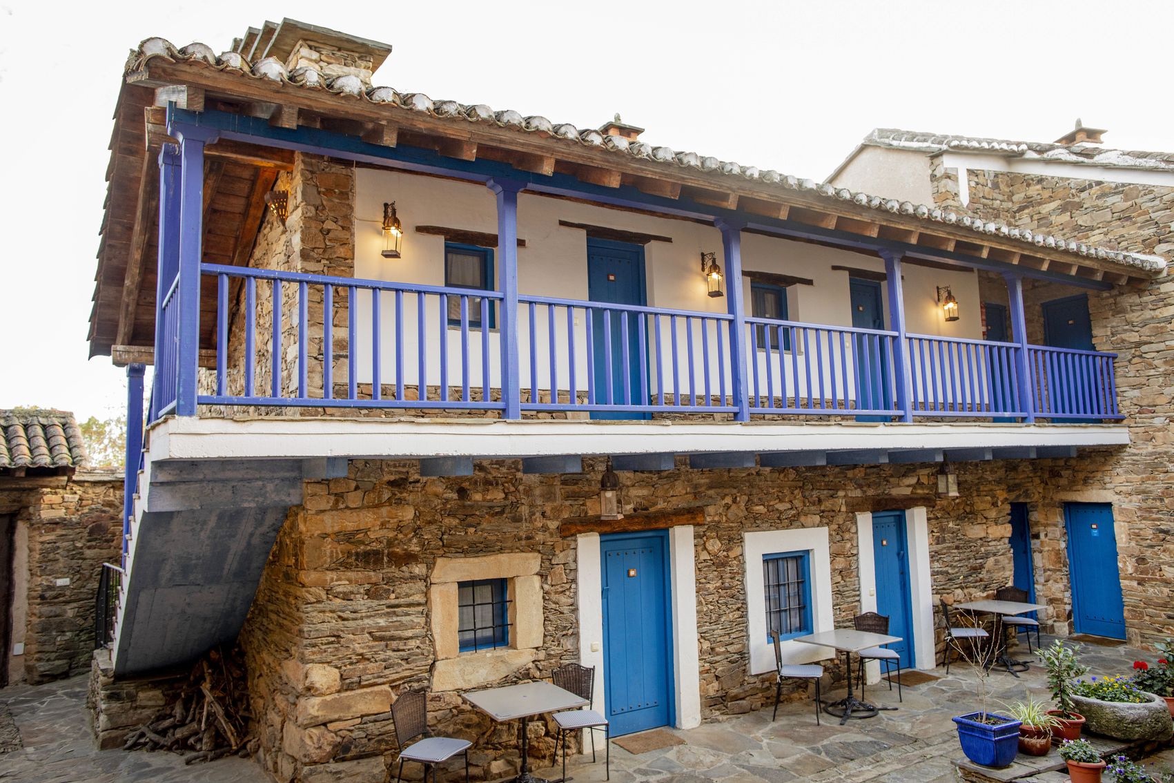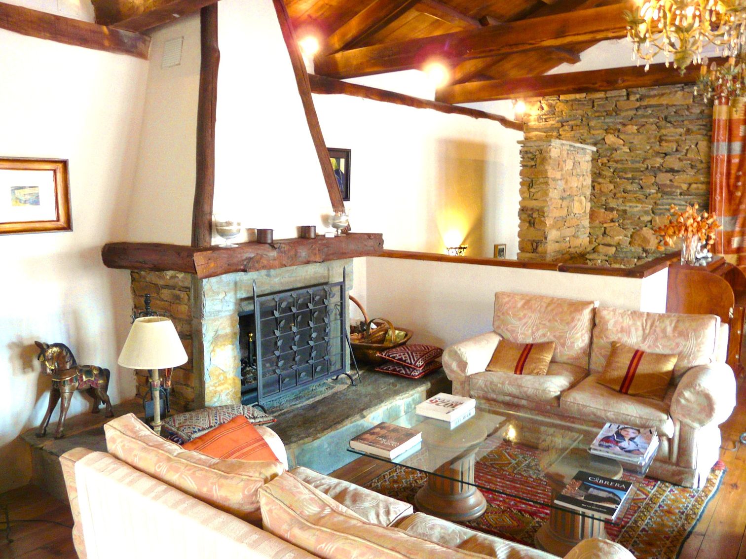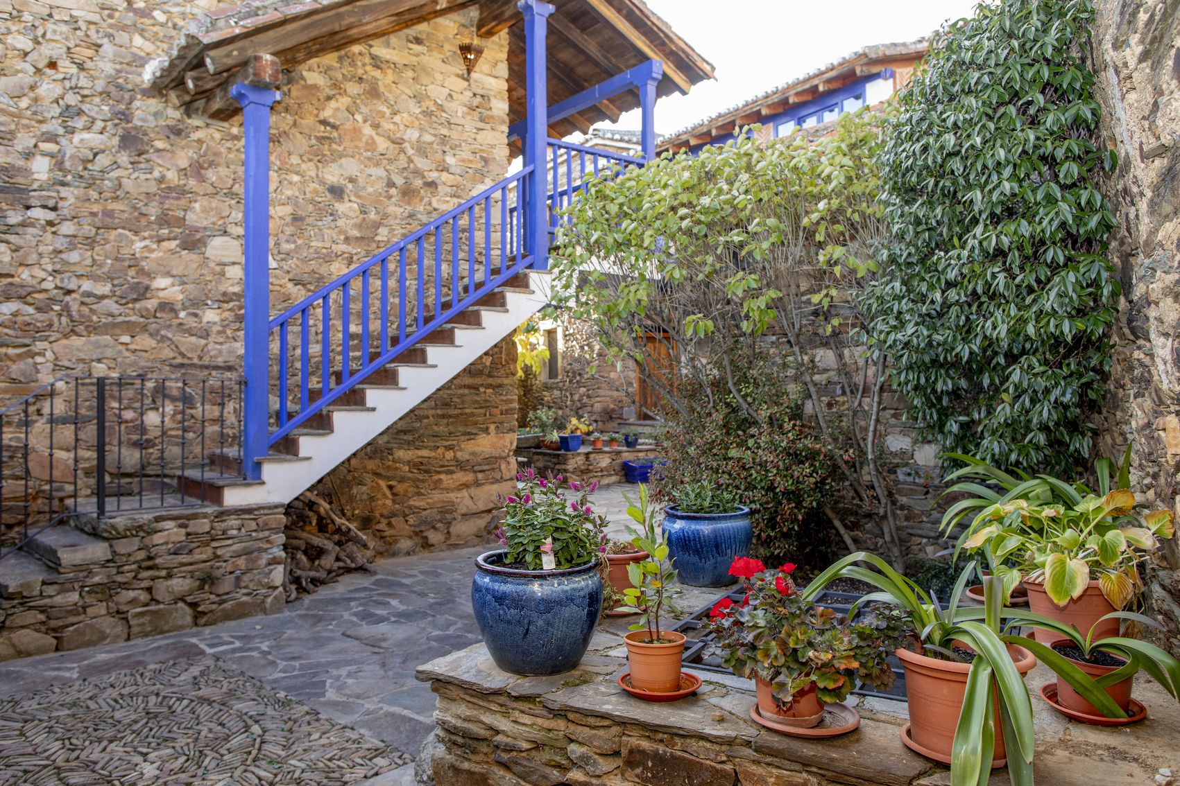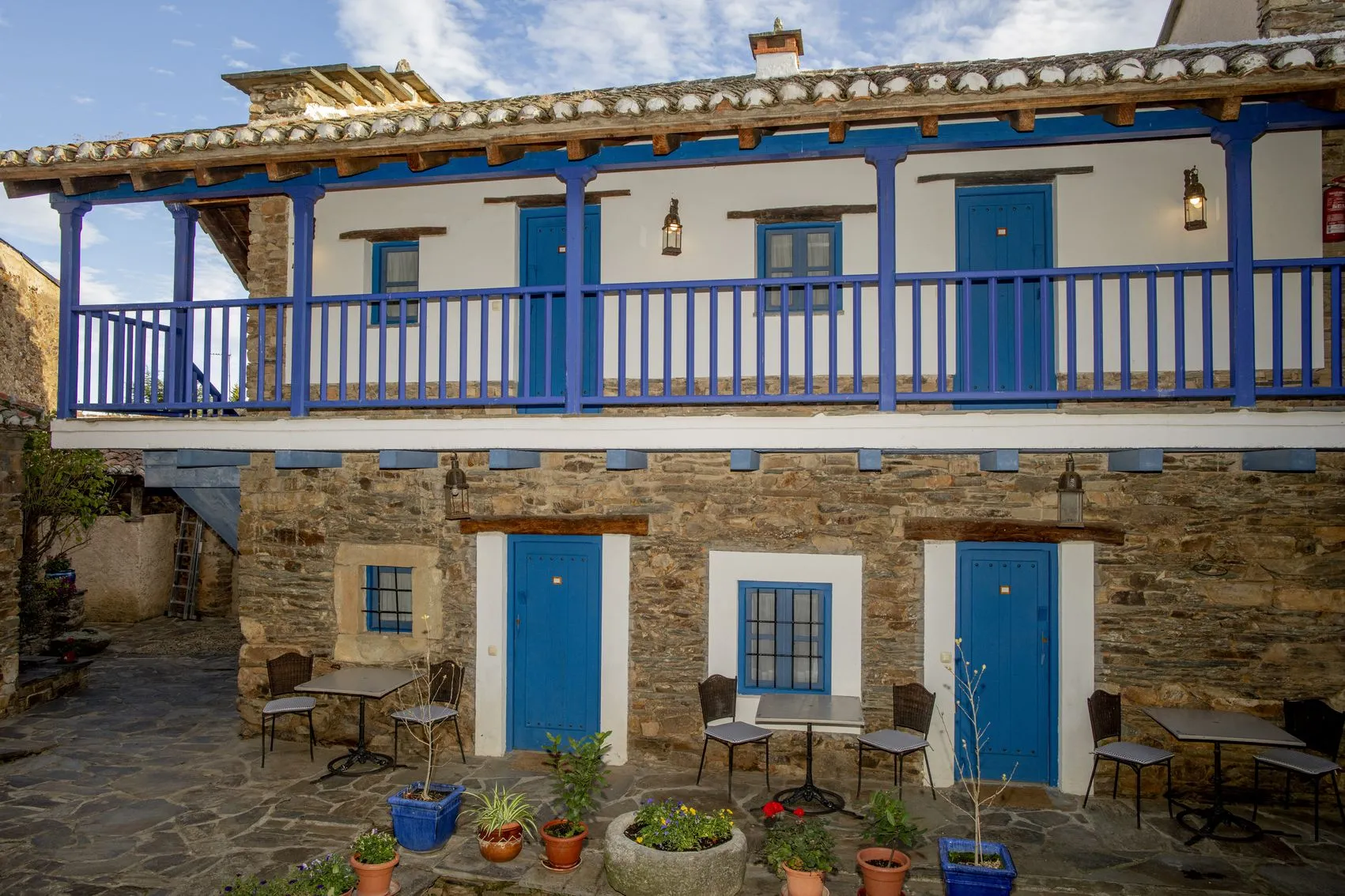 Con casi 500 m² construidos distribuidos en dos edificaciones de piedra que se abrazan alrededor de un encantador patio empedrado, la casa conserva su alma original: el arco de entrada, el pozo, la galería acristalada, los corredores de madera y el antiguo horno tradicional.