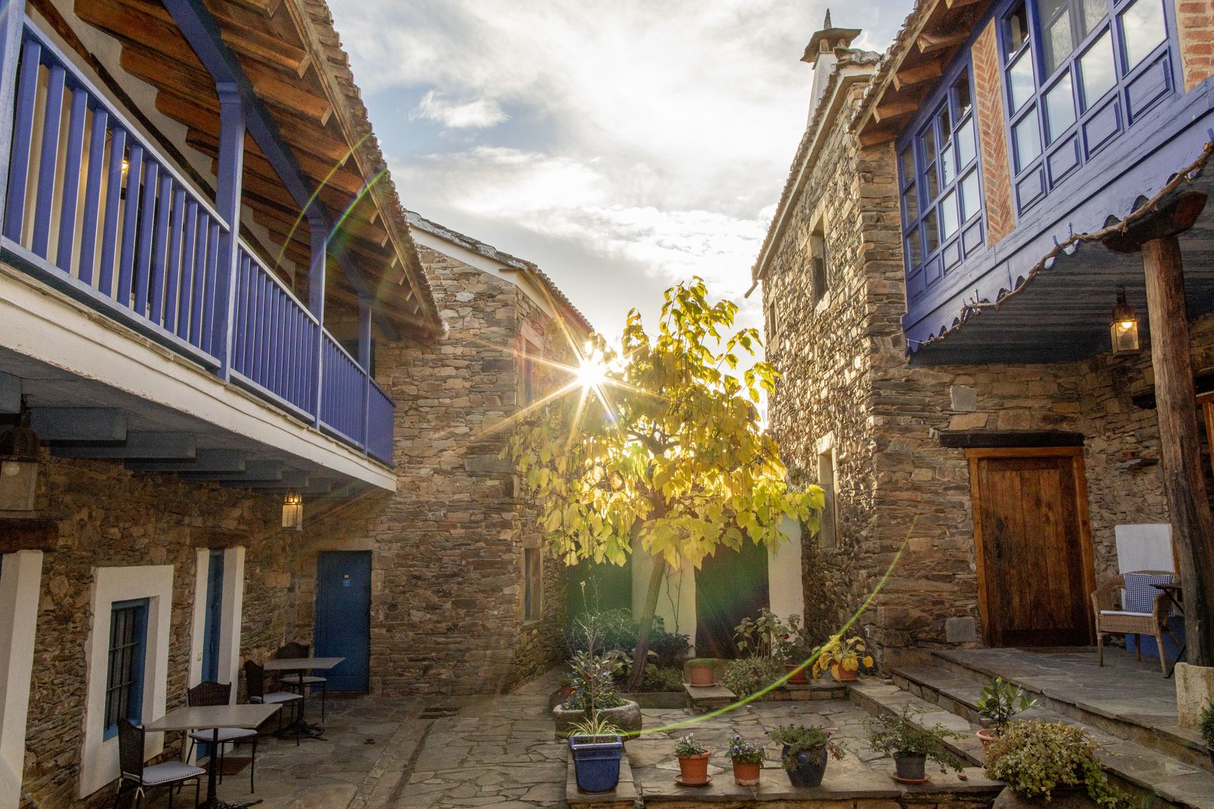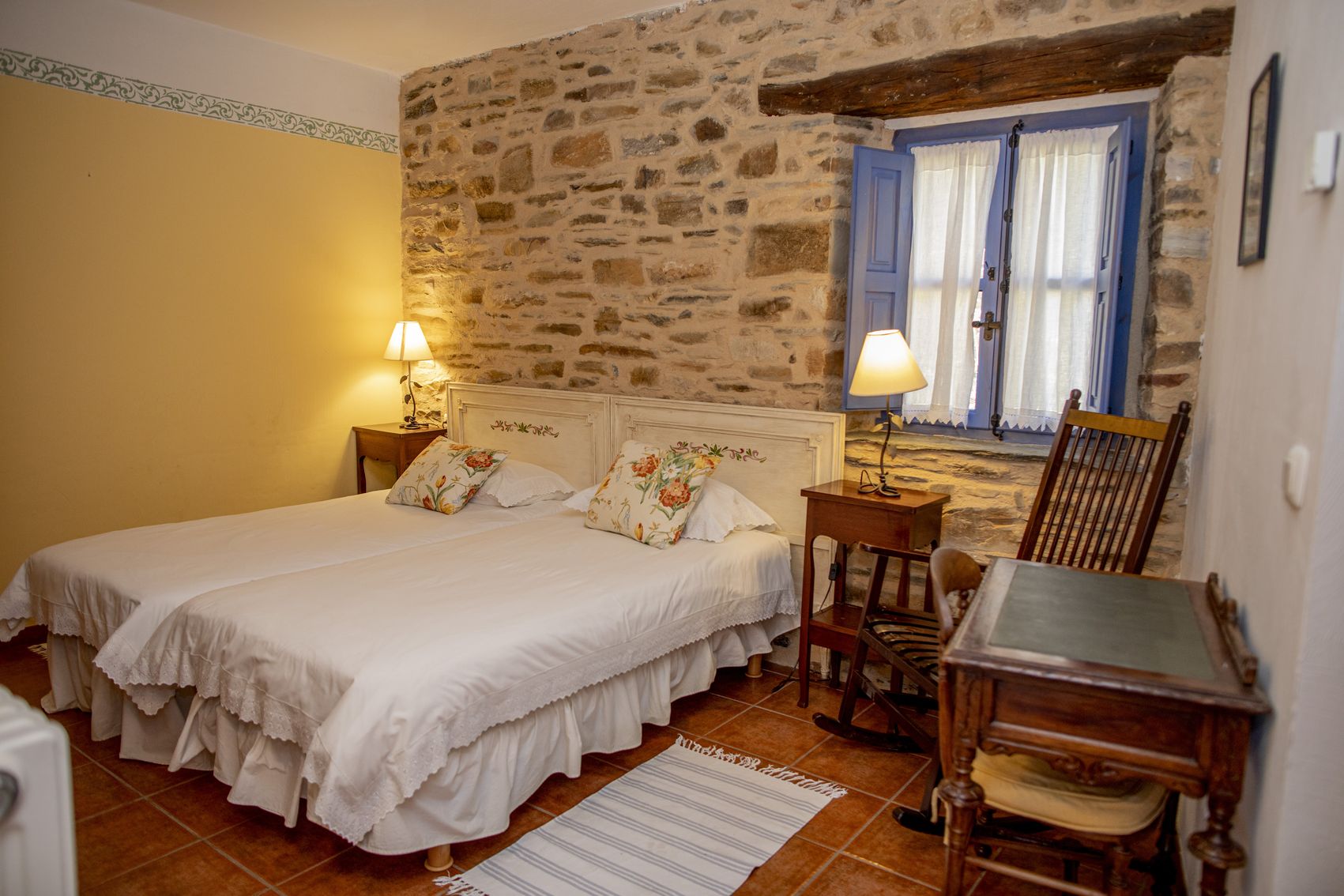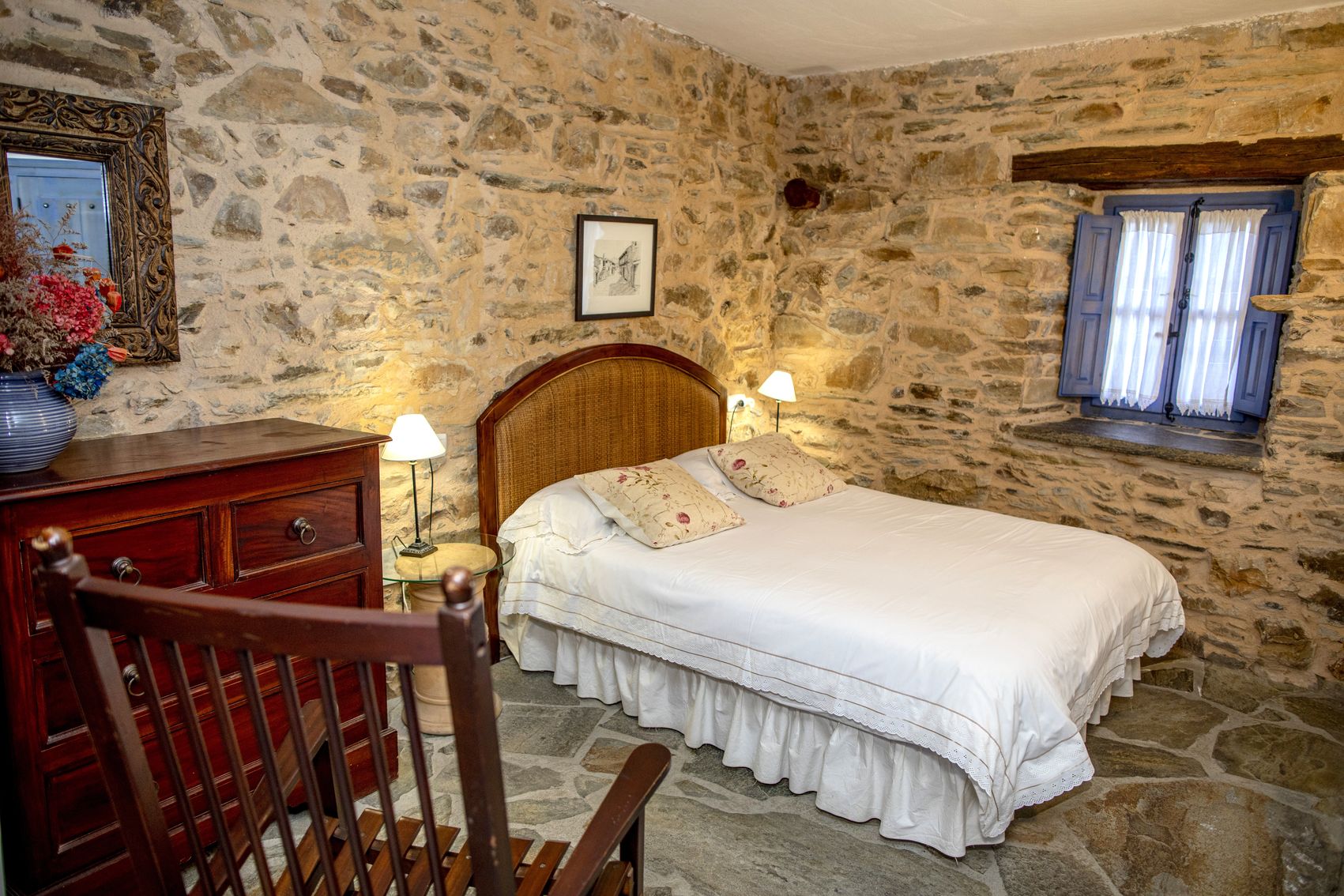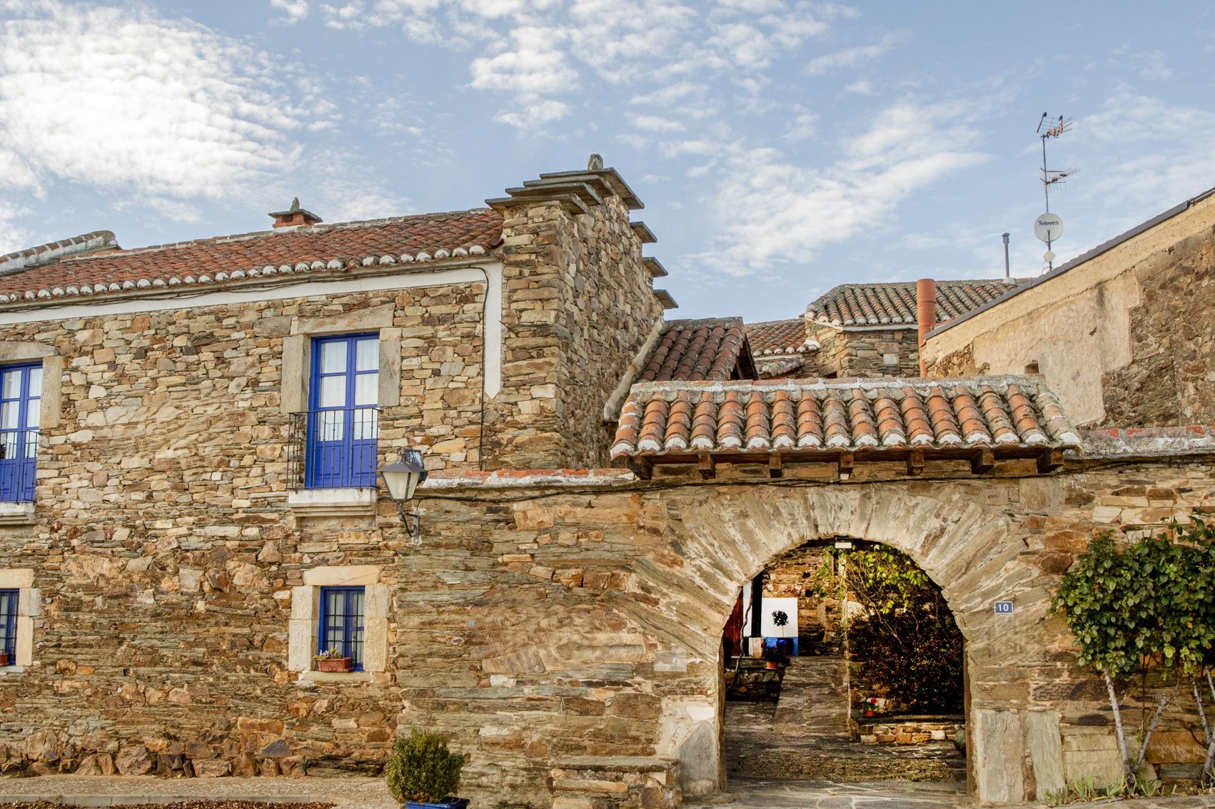 Con casi 500 m² construidos distribuidos en dos edificaciones de piedra que se abrazan alrededor de un encantador patio empedrado, la casa conserva su alma original: el arco de entrada, el pozo, la galería acristalada, los corredores de madera y el antiguo horno tradicional.