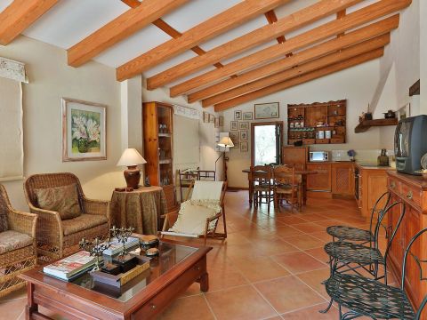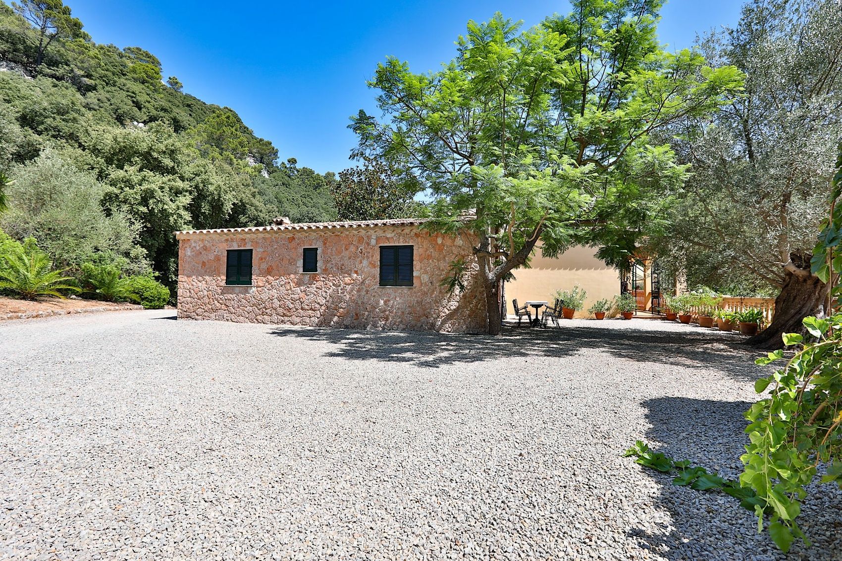 La gran casa principal, con un diseño característico de las casas de campo tradicionales de Mallorca, destaca por sus excelentes acabados y por el uso de materiales como el barro, la piedra y la madera; cuenta con calefacción de gasoil por suelo radiante, carpintería de armarios y puertas de madera de teka, ventanas de climalit, pre instalación de ascensor, depósito de agua y filtro. Dispone de espacios luminosos y acogedores tanto en el exterior, con frondosos jardines y porches, como en su interior, con terrazas y balcones con preciosas vistas de las montañas del entorno.