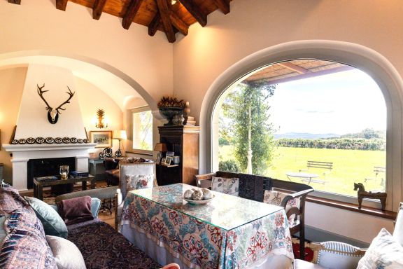 El interior alberga en la planta baja, un hall que da paso a un gran salón con chimenea, comedor y dos aseos de cortesía; en esta planta además se encuentran 3 dormitorios con baño y acceso al patio central. En la primera planta, hay otros 4 dormitorios con baño.