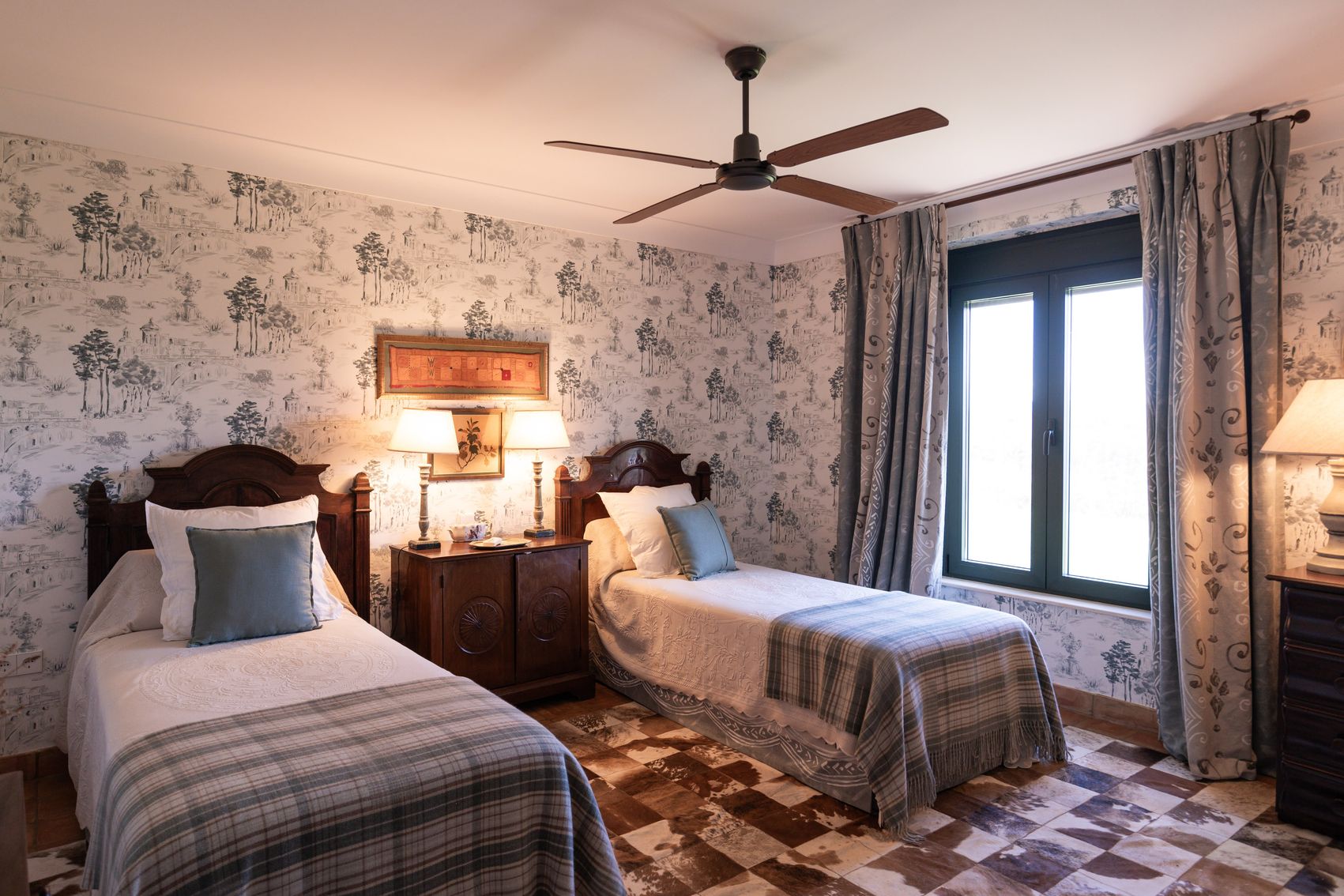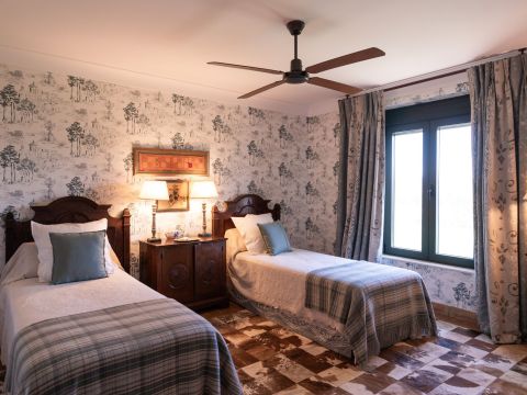 Junto a la vivienda principal se sitúa la zona de servicio y de gestión de la finca y sus producciones, con un despacho, sala de despiece y cámara frigorífica, un salón social con cocina, además de dormitorios y dependencias para personal de servicio. La propiedad dispone de luz de red complementada por placas solares y agua de pozo.