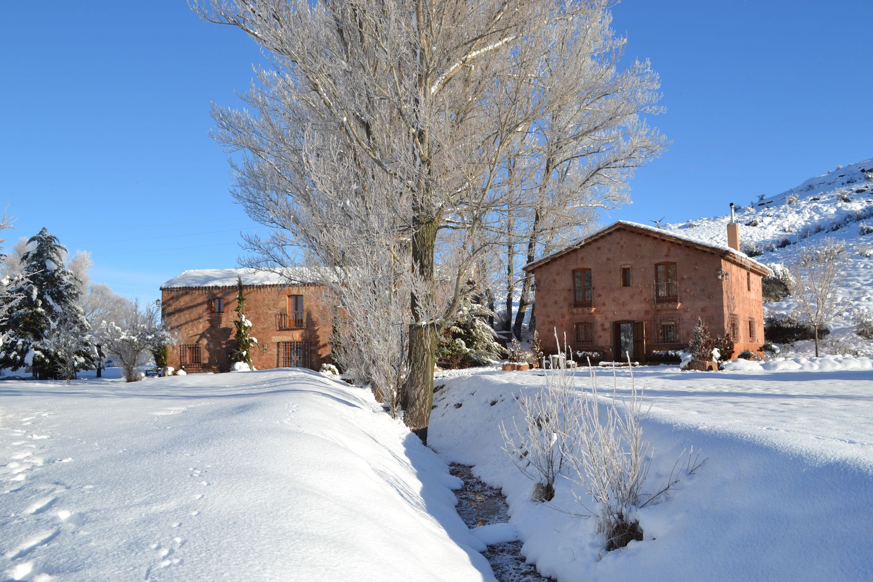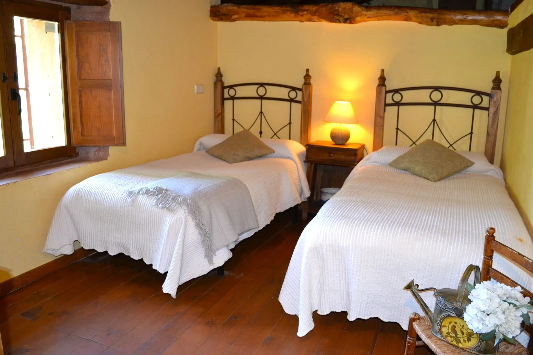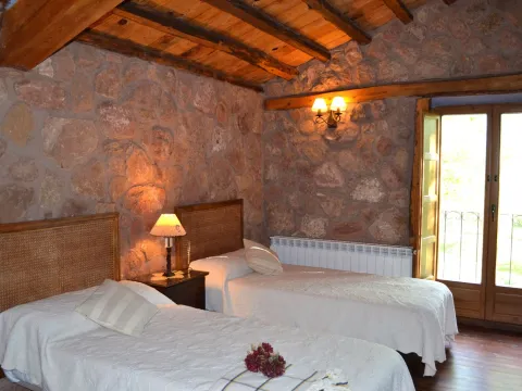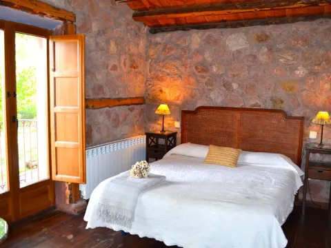 El antiguo molino se desarrolla en dos plantas y cuenta con 224 m² construidos. En la planta baja se dispone un amplio salón-comedor con chimenea, cocina y aseo de cortesía, mientras que la planta superior alberga cuatro dormitorios, todos ellos con baño en suite, concebidos como espacios íntimos abiertos a la calma del entorno natural.