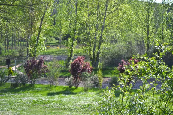 La finca se sitúa en el término municipal de Miedes de Atienza, a 8 kilómetros de Atienza y a 145 kilómetros de Madrid. Se accede por un camino rural en buen estado y se encuentra a solo dos kilómetros del núcleo urbano. Rodeada de bosques, praderas y el cauce del río, ofrece vistas abiertas, silencio absoluto y una ausencia total de contaminación visual y acústica.