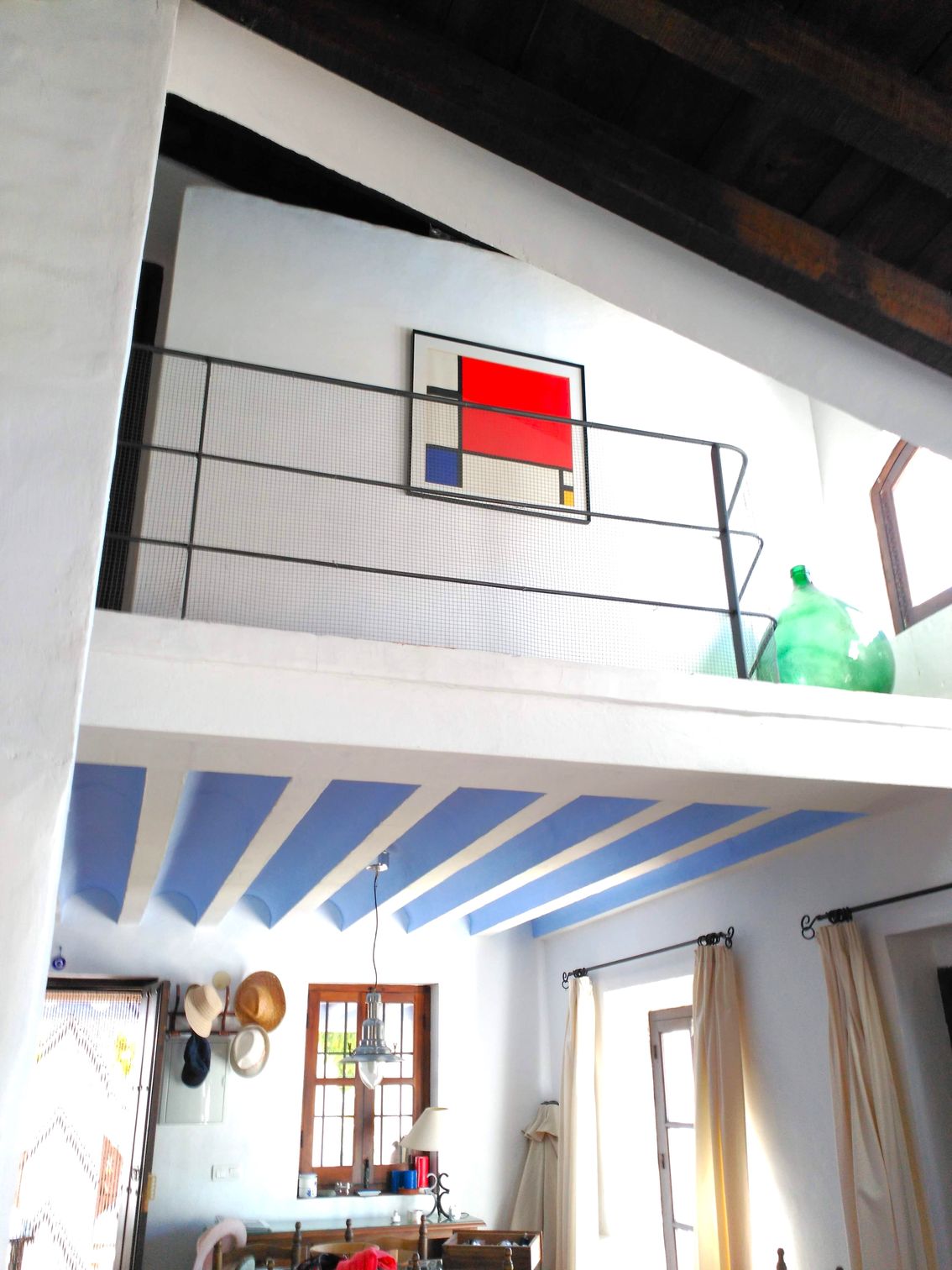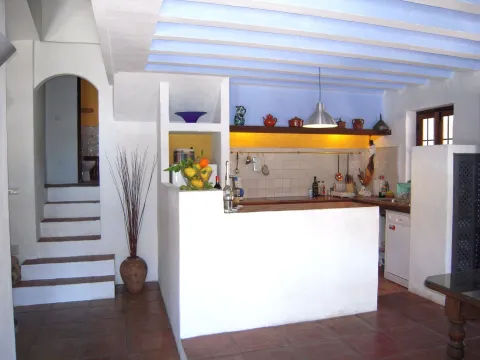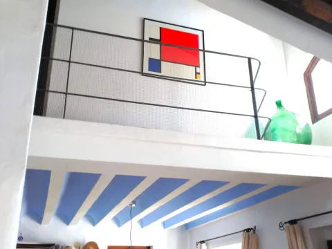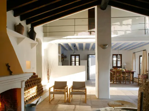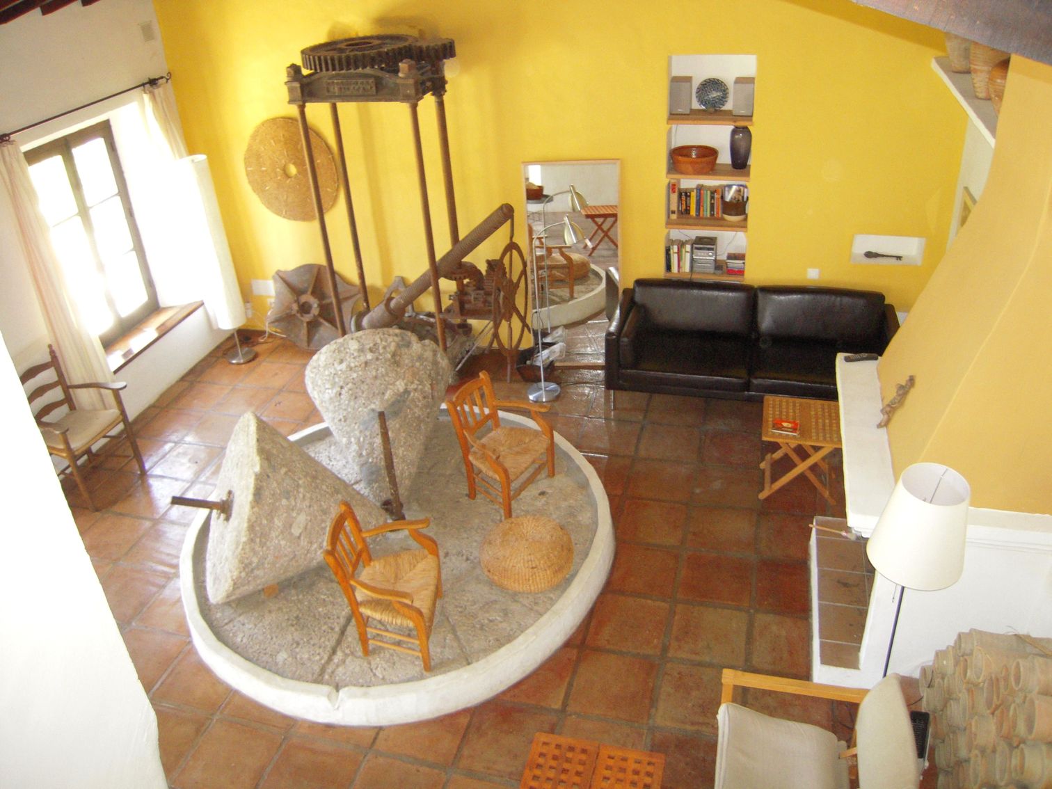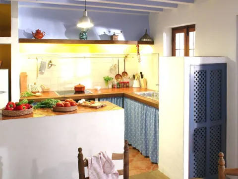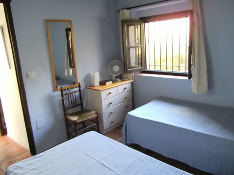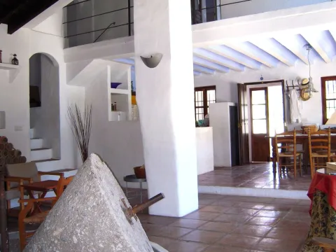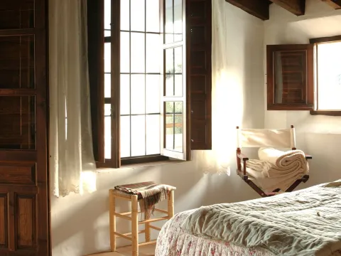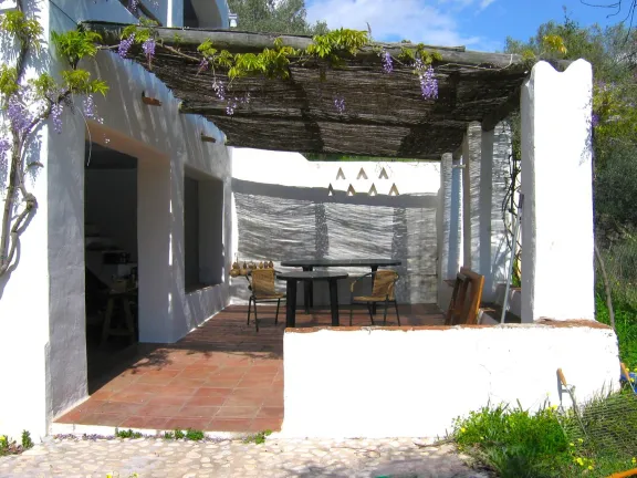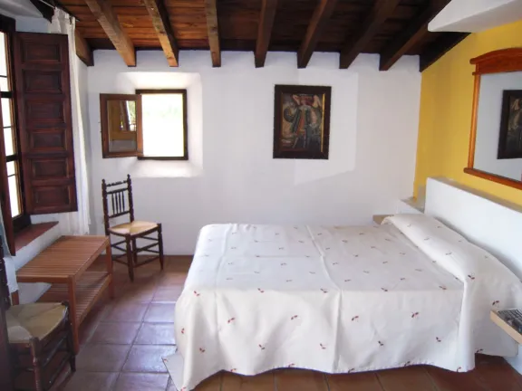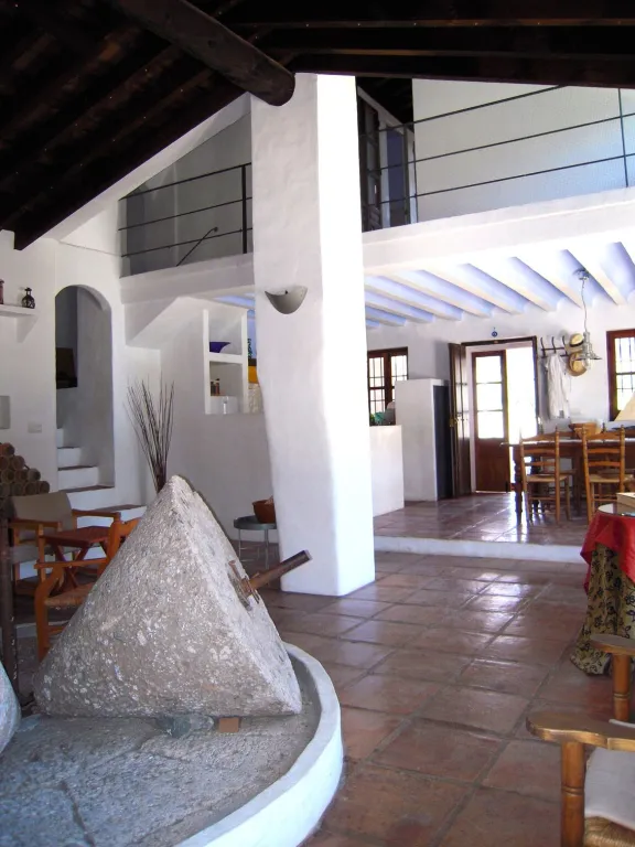 - La edificación principal es la antigua almazara o molino, hoy convertido en una encantadora vivienda que cuenta con dos dormitorios, dos baños, un amplio salón-comedor, cocina americana, terraza y porche. Los espacios abiertos y la altura de los techos refuerzan la sensación de amplitud, mientras que los elementos originales recuerdan la antigua actividad del molino.