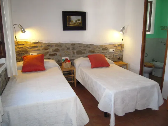 - El establo original, comunicado con la vivienda principal a través de un agradable patio interior, es la segunda vivienda que cuenta también con dos dormitorios, dos baños, salón, terraza y porche. Es ideal como casa de invitados o alojamiento independiente.